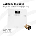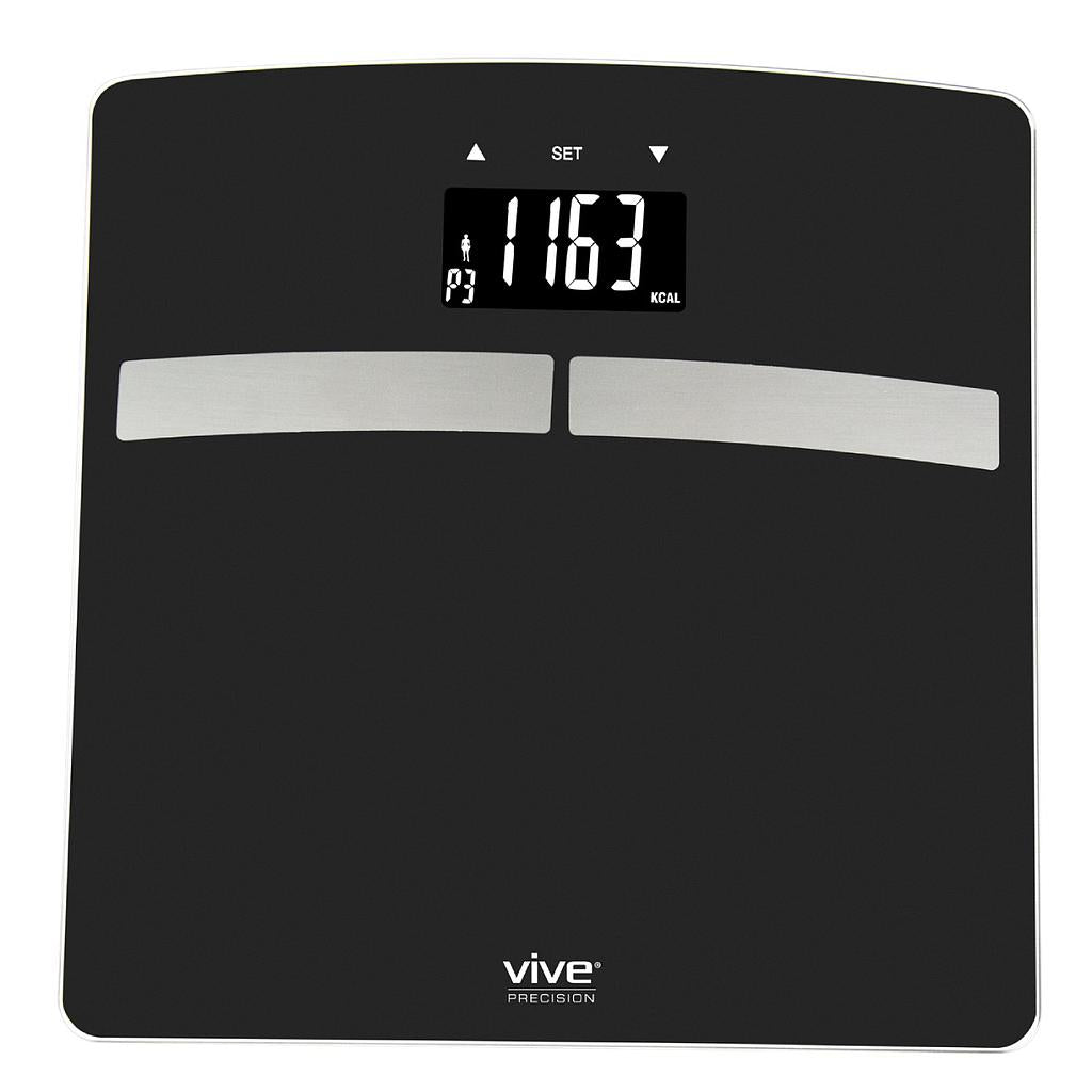 Easily track weight, with the Vive Body Fat Scale. Using high precision sensors and bioelectrical impedance analysis, the smart scale provides accurate measurements and a complete body composition analysis for personal reference. The smart body fat scale easily connects with iOS and Android devices through the Vive Now app, working with devices operating on iOS version 8.0 or higher and Android version 5.0. Sleek and modern in design, the slim, tempered glass scale features a high contrast display for viewing measured body weight at a glance and is durably constructed to support up 396 pounds.