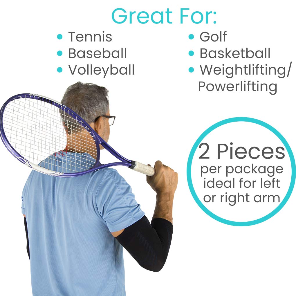 Designed to move with you, our elbow compression sleeves are soft and flexible. Our arm sleeves provide stabilizing support for active individuals when playing tennis, golf, basketball, volleyball and cross-training. The sleeves also improve post-workout recovery.