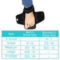 Secured with two wide fastener straps, the offloading post op shoe is easily adjustable and includes two extender tabs to comfortably accommodate bandages, dressings and swelling. The post op shoe features a neutral base for use on the left or right foot.