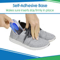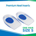 This set includes three pairs of comfortable gel heel cups that can be worn in most shoe styles, including athletic shoes, dress shoes and boots. The self-adhesive base ensures the heel cups stay firmly in place throughout the day. -