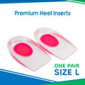 Providing all day comfort, the cushioning gel heel cups absorb the impact of each step and eliminate painful pressure points to relieve heel and foot pain. Perfect for any closed-heel dress, casual and athletic shoes, the set includes three pairs of premium gel heel inserts with self-adhesive backing for a nonslip fit throughout the day. Constructed with a soft, soothing gel, the heel cups are latex-free.