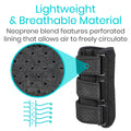 Perfect for nighttime use, the stabilizing elbow splint is made with a lightweight, breathable neoprene blend with a nonslip lining to prevent sliding. The elbow wrap also features a soft padding and a perforated lining that allows air to freely circulate, keeping the arm cool and dry for maximum comfort.