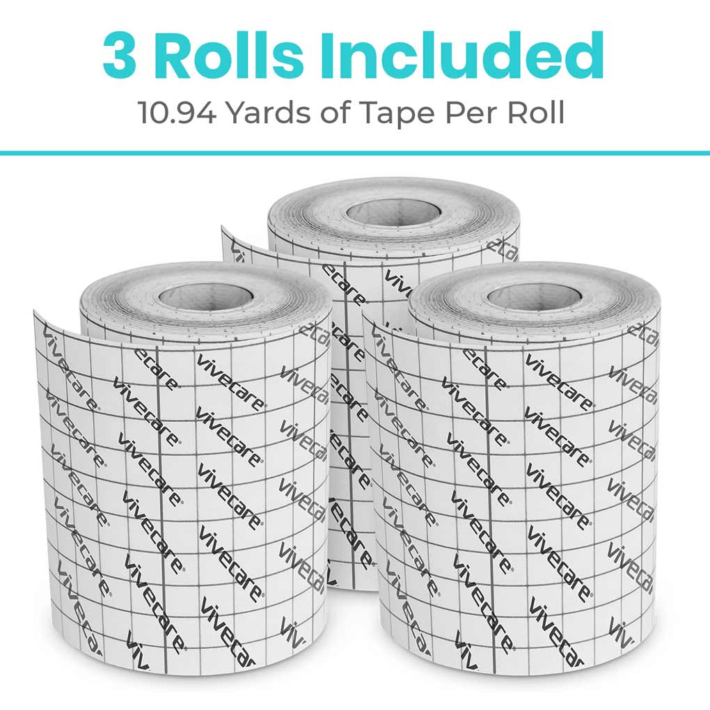Easily secure bandages and wound dressing pads with the Vive Adhesive Surgical tape. Each roll of the latex-free medical tape features an easy-to-peel backing with a printed grid for cutting to size. The Adhesive Surgical tape is made with a soft, breathable nonwoven material and a skin-friendly adhesive for easy removal. Each set includes three rolls of non-sterile surgical tape.