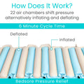 The alternating pressure pad is expertly designed to offer significant relief from sore spots and pressure ulcers, making it ideal for individuals bedridden for extended periods or those with limited mobility. This innovative system gently redistributes pressure across the body, helping to prevent the formation of ulcers and alleviate existing soreness.