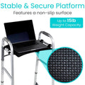 Featuring an ergonomic contour, the tray is meticulously shaped to maintain generous walking or seated space. This design promotes uninterrupted mobility and comfort, allowing for seamless use of your walker while keeping personal items conveniently accessible