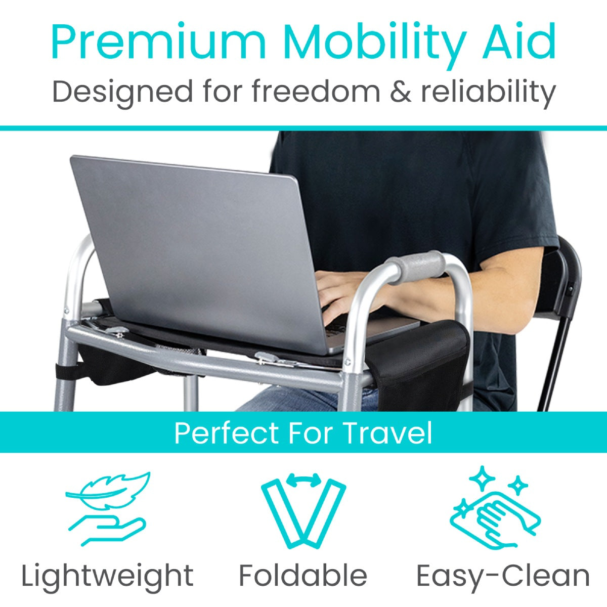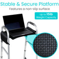Our walker tray features an advanced slip-resistant surface, meticulously designed to prevent your plates and personal items from sliding out of reach. This robust functionality lets you dine or engage in leisurely activities without the concern of items moving out of place